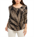 JM Collection Women's Printed 3/4 Sleeve Top -Black Size Petite S