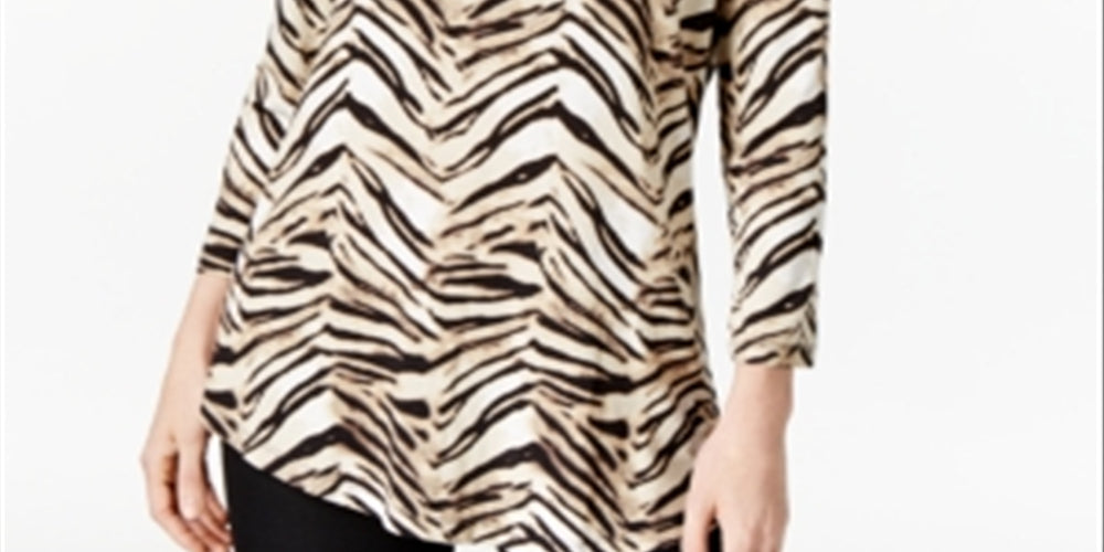 JM Collection Women's Printed 3/4 Sleeve Top Brown Size Petite Medium