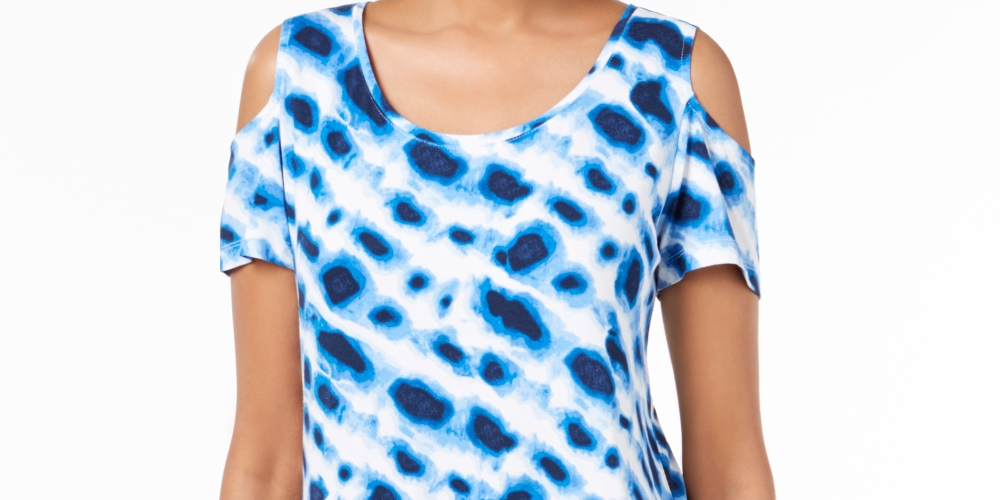 JM Collection Women's Printed Cold Shoulder Top Blue Size Small