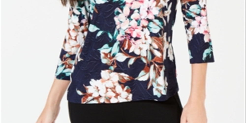 Absolutely effortless| this JM Collection top is never short on style. A textured finish punctuates this classic wardrobe piece featuring a crew neckline and 3/4-sleeves.| Crew neckline| Textured pattern| 3/4-sleeves| Fitted; hits at hip