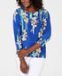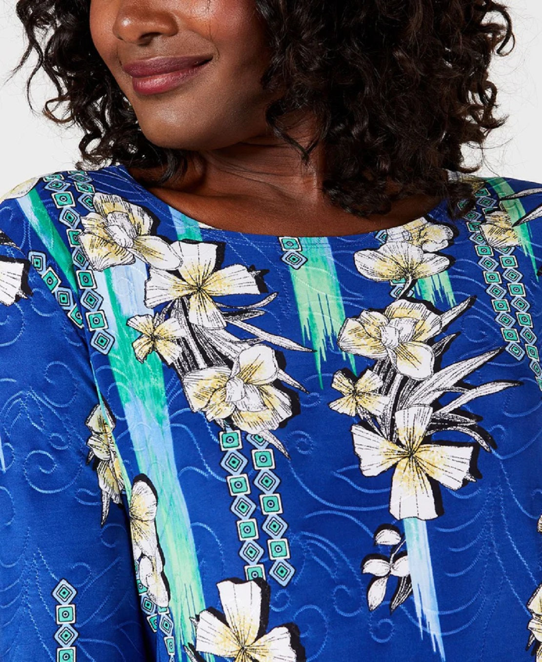 JM Collection Women's Printed Jacquard Top Blue Size XXL