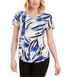 JM Collection Women's Printed Scoop Neck T-Shirt Blue Size X-Small