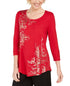 JM Collection Women's Printed Scoop Neck Top Red Size -Petite S