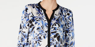 JM Collection Women's Printed & Solid Blouse Blue Size Petite Small