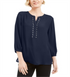 JM Collection Women's Rivet Pleated Back Blouse Blue Size M