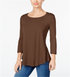 JM Collection Women's Scoop Neck Top Brown Size Medium