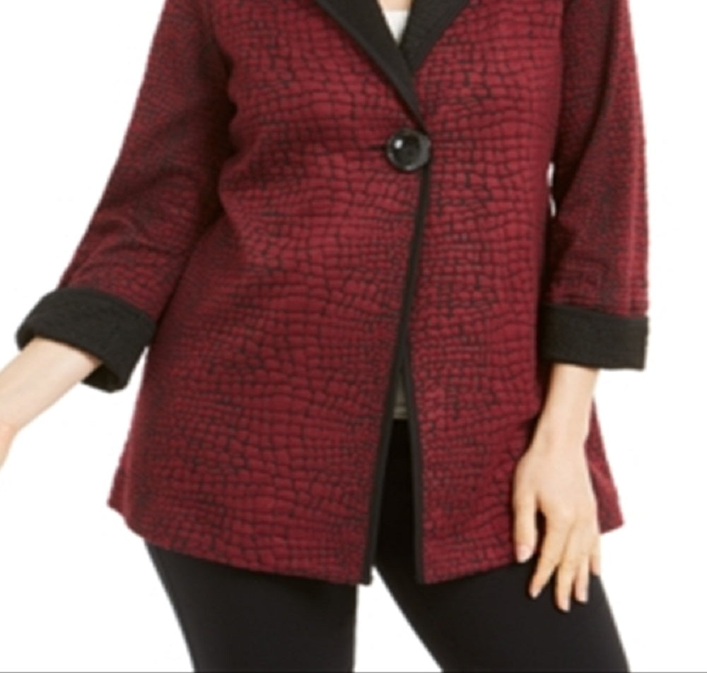 JM Collection Women's Snake Print Mock Neck Jacket Red Size X-Large