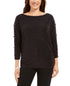 JM Collection Women's Split Sleeve Metallic Threaded Top Black Size Medium