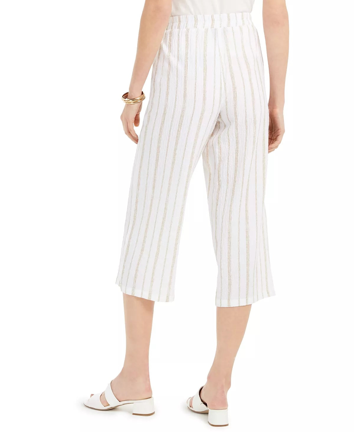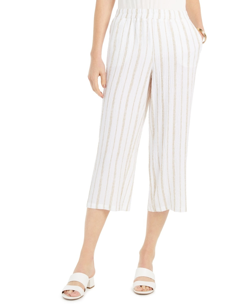 JM Collection Women's Striped Crinkle Pants Beige Size Medium