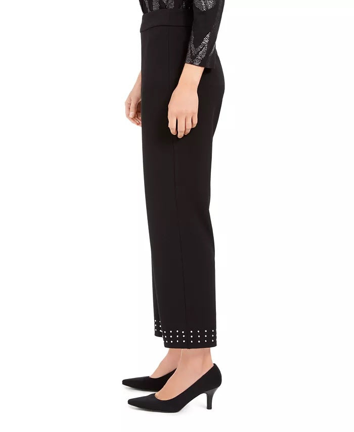 JM Collection Women's Studded-Hem Ankle Pants Black Size Small