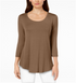 JM Collection Women's Three Quarter Sleeve Top Brown Size Petite Small