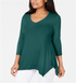 Ask a question about JM Collection Women's V Neck Handkerchief Hem Top Green Size Large