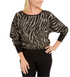 JM Collection Women's Zebra Print Jacquard Sweater Black- Gold Size Petite S/M