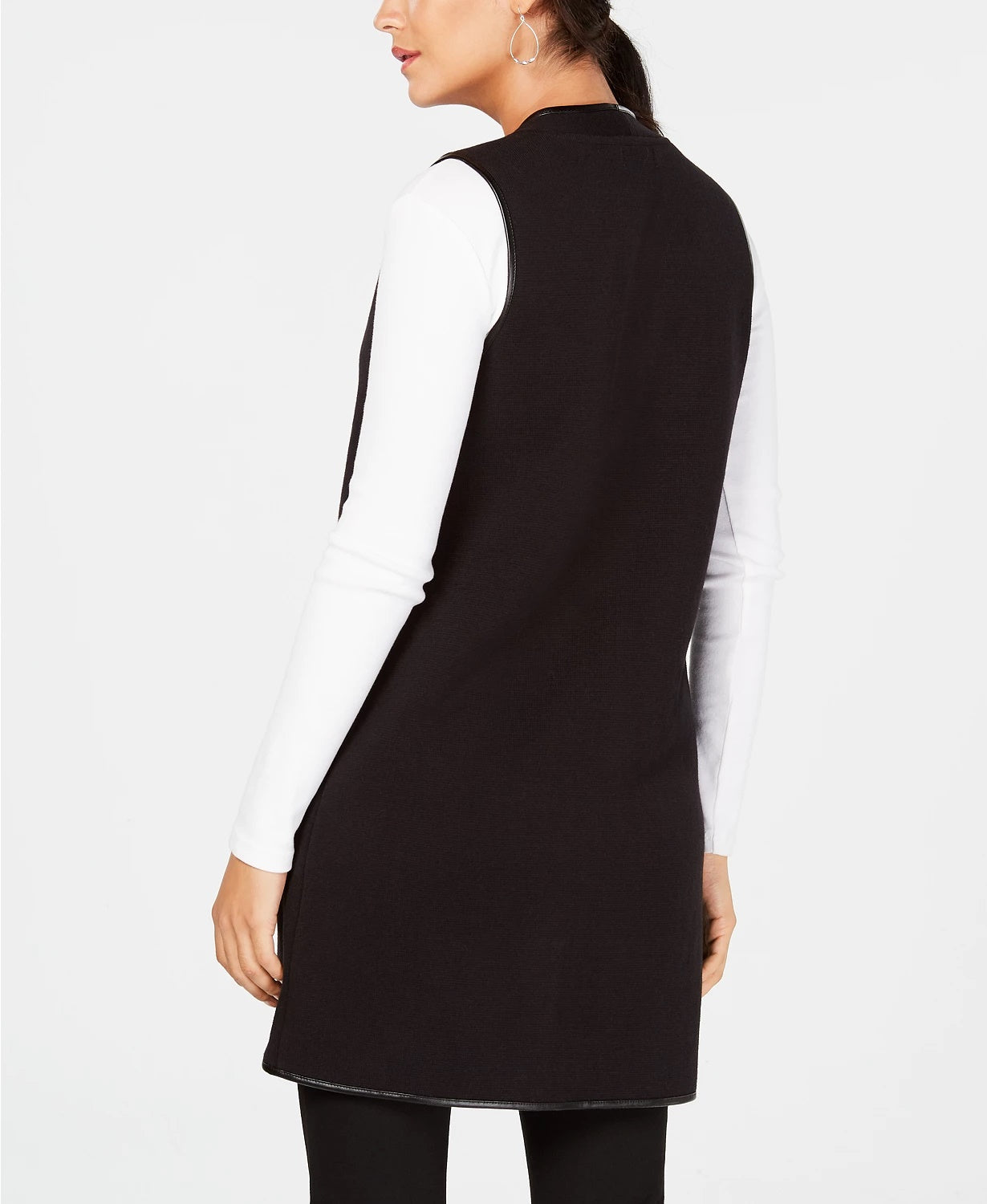 JM Women's Collection Faux-Fur-Pocket Vest Black Size Small