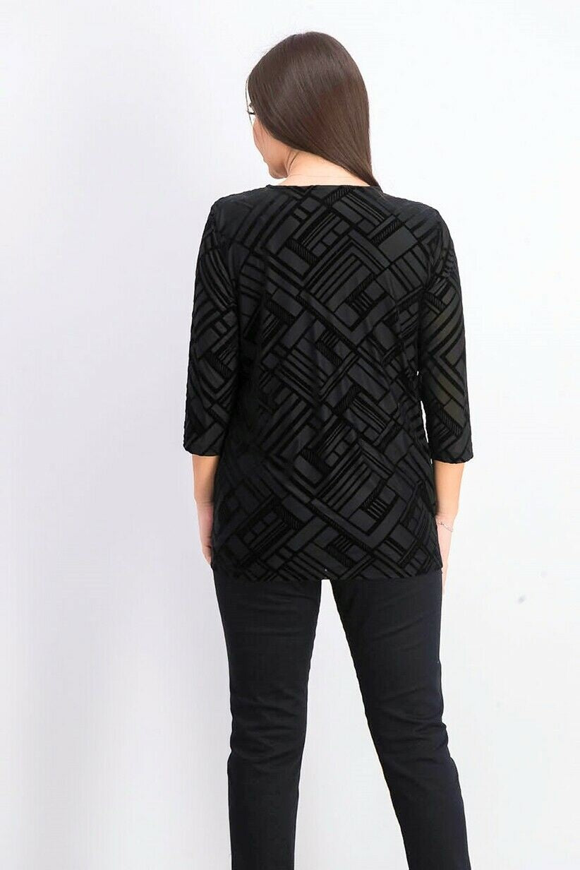 JM Women's Collection Velvet Necklace Top Black Size Extra Small