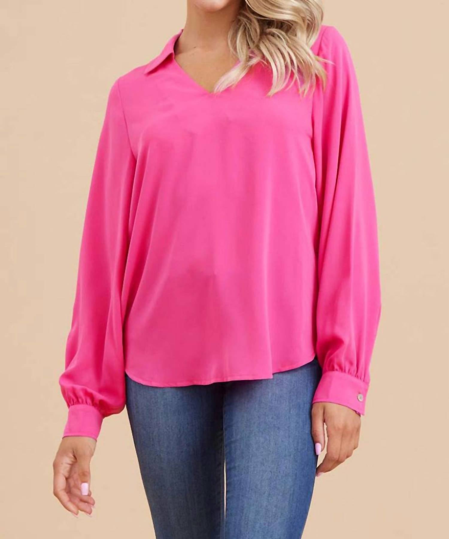 Pair this with your favorite jeans and slides for your next girls night out. Discover the Long Sleeve V Neck Top by Jodifl, a must-have in a beautiful pink hue. Designed for a flawless fit with long sleeves, this top combines 95% Polyester and 5% Spandex, offering a lightweight, non-sheer silhouette perfect for every occasion. It features a pull-on closure and falls true to size, with measurements for bust ranging from S(36") to L(40"). Elevate your style effortlessly whether dressing up for a dinner party or embracing casual elegance.