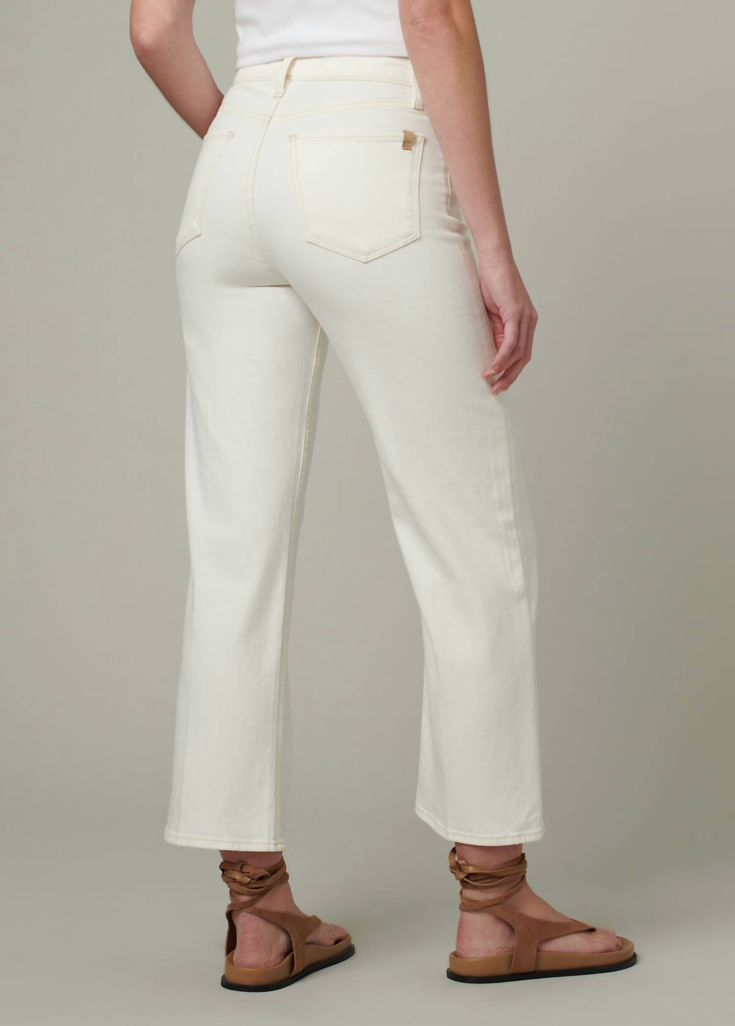 Pair these wide leg jeans with mules, slides or your favorite strappy sandals. Introducing the Blake Wide Leg Jeans by Joe's Jeans, a chic addition to your spring wardrobe in an overdyed Milk wash. These high-rise jeans feature a regular fit with a wide-leg style, designed for effortless summer styling. Crafted from a cotton blend of 63% cotton, 35% lyocell, and 2% elastane, they offer both comfort and flexibility. Details include a button closure and handy pockets, perfect for streetwear trends and engagement occasions.