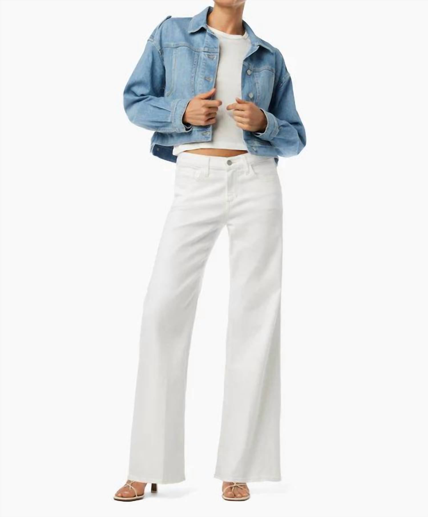 Just as cute as they are comfortable. Introducing the Lou Low Rise Wide Leg Jeans in a crisp white wash from Joe's Jeans, perfect for a relaxed yet stylish summer look. Crafted from a cotton blend featuring 50% Cotton, 42% Lyocell, 7% Recycled Polyester, and 1% Elastane, these jeans are designed for comfort with a minimalist wide leg and a low rise of 9 inches. The jeans have a 32-inch inseam and a generous 23-inch leg opening, making them a standout choice for a dinner party this season. Closure: Zip closure.