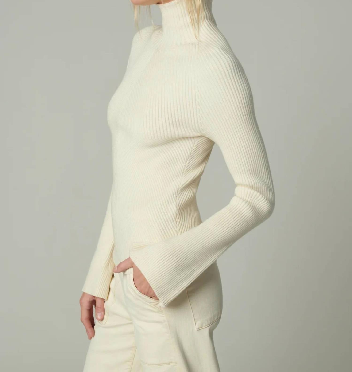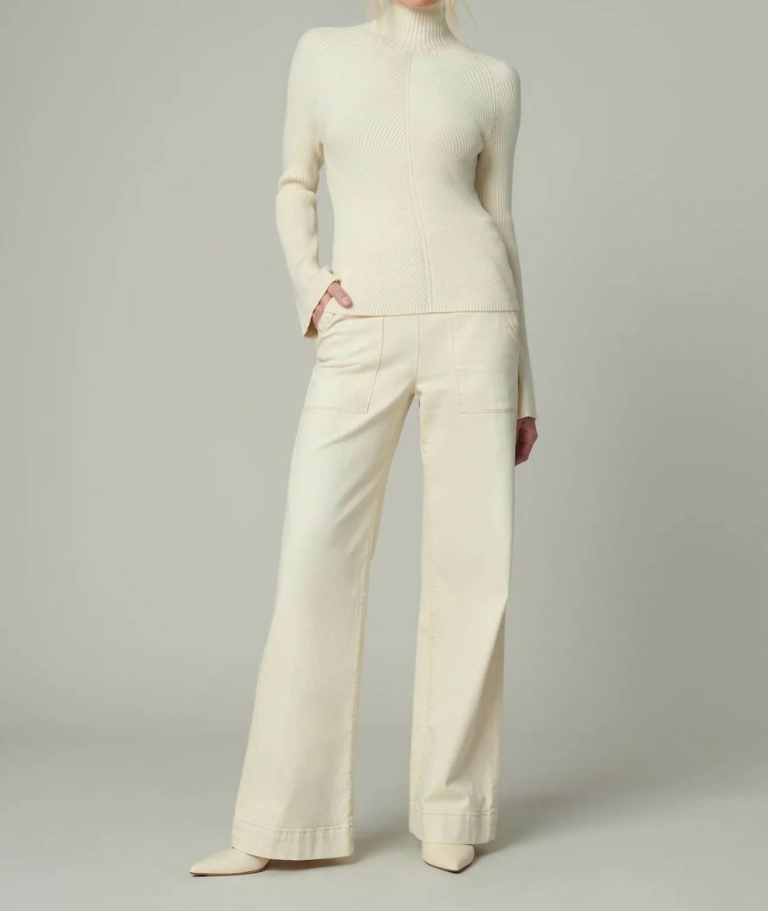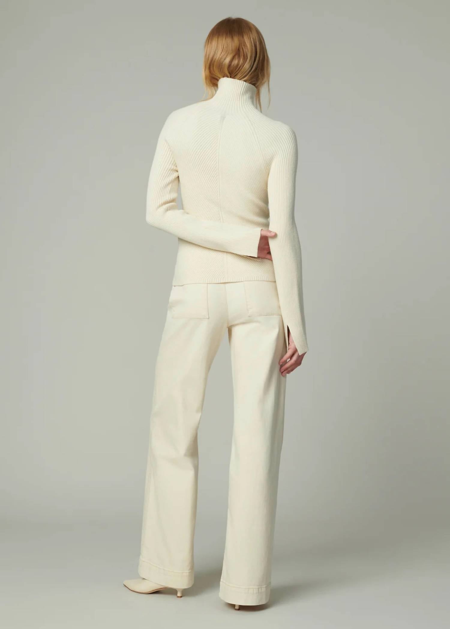 Cozy fabric, impeccable design - Meet the sweatshirt that you'll never want to take off. Step into sophistication with the Palmer Turtleneck Sweatshirt by Joe's Jeans, a must-have for any travel occasion or Thanksgiving gathering. Crafted from a soft blend of 30% Acrylic, 29% Polyester, 21% Modal, and 20% Nylon, this slim-fit, solid-patterned piece in a milk hue offers an elegant long sleeve design with split cuffs and a classic turtleneck silhouette. The rib knit fabric adds texture and charm, making it perfect for fall preppy trends. Closure: Pull on. Care Instructions: Hand wash and lay flat to dry.