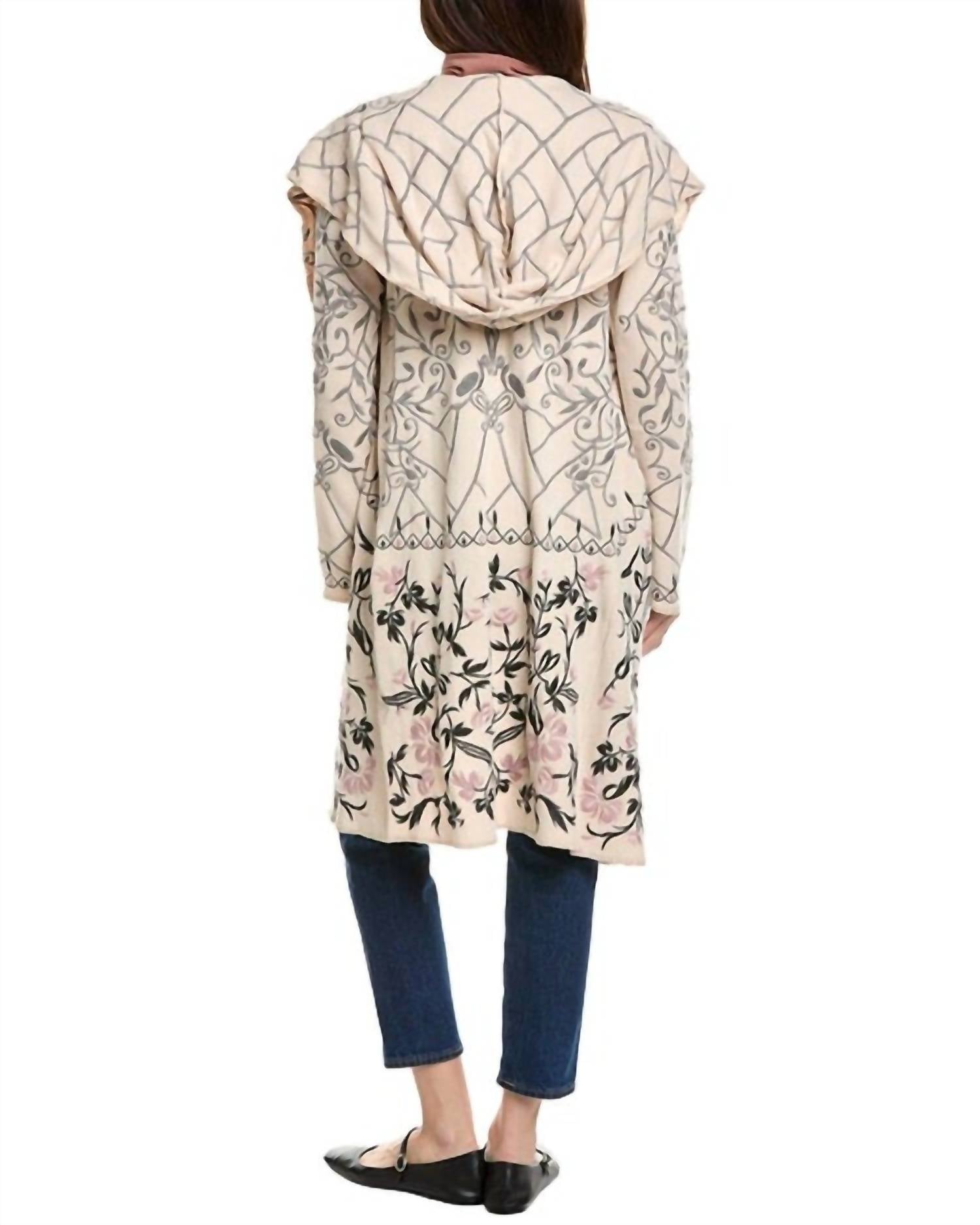 A classic fit that works just as good buttoned as it does left open. Introducing the Primrose Biya Duster, a stunning addition to your wardrobe. Embrace the eclectic, boho vibes with a vintage flair. This embroidered sweater features a beautiful ecru color/pattern and measures approximately 38.25 inches from shoulder to hem. With slip-on styling and no closure, this duster is stylish and comfortable. Designed with intricate details, this cardigan will become a staple in your closet.