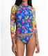 The Long Sleeve Surf Shirt provides extra protection from the elements and comes in vibrant colors. It features a crew neckline with a half-zip front and is designed with contrasting sleeves and decorative stitching on the side panels. Pair it with the String Bikini Bottoms for a perfectly coordinated surfside look.