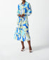 Introducing the Leaf Print Waist Tie Midi Shirt Dress by Joseph Ribkoff, a chic choice for holiday parties and spring outings. This shirt dress in Vanilla/Multi features long sleeves and a collared neckline, accentuated by a graphic leaf print. The midi length design includes a self-tie waist sash and convenient side pockets for effortless style and functionality. Crafted from 100% polyester in Canada, it has a button front closure and requires hand washing with line drying in the shade.