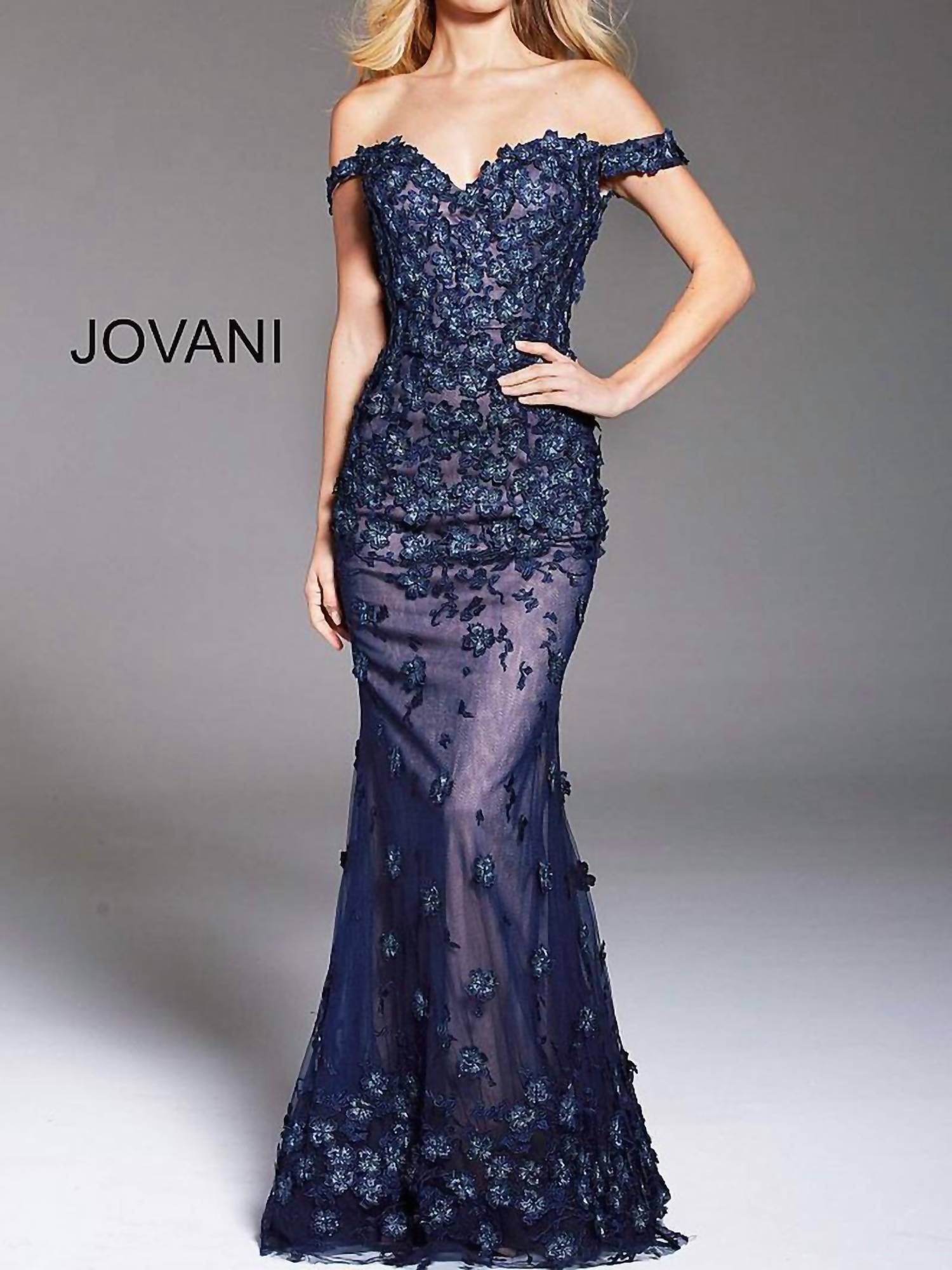 Jovani - Floral Embellished Off Shoulder Evening Dress