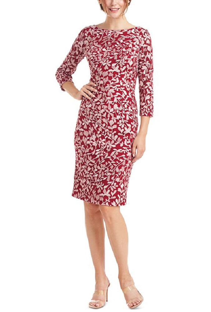 JS Collection has the perfect cocktail dress with this embroidered piece| featuring a sheath silhouette for timeless style.| Approx. 44 long from center back neck to hem. Length is based on size 6 and varies 1/4 between sizes| Tailored fit through the chest| waist| and hips; sits close to the body