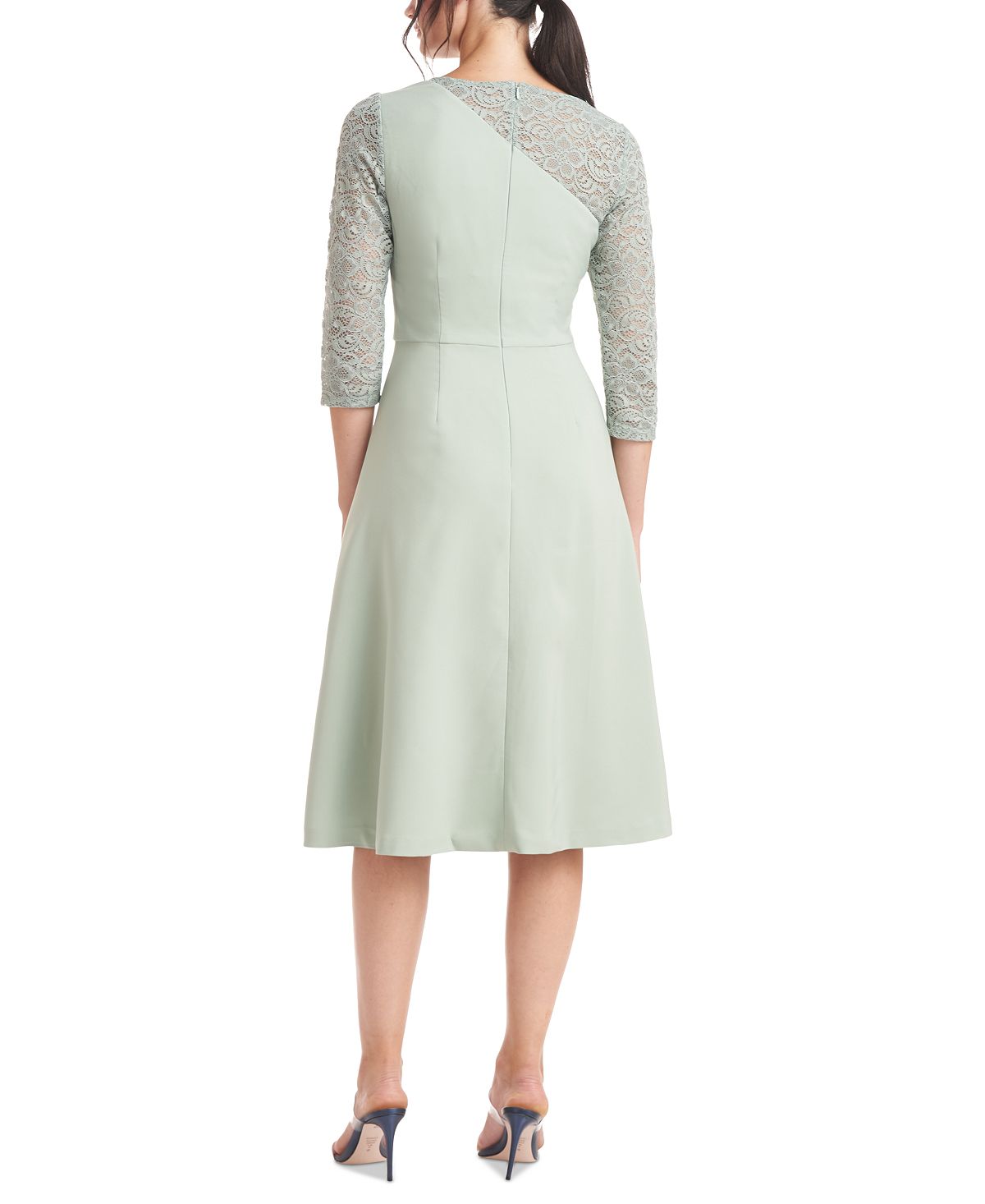 Scuba crepe shapes up asymmetrically at the lacy shoulder and sleeves of this JS Collections midi dress that's ideal for a wedding guest or for the mother of the bride or groom.| Runs true to size; order your normal size| Falls below the knee to lower calf| Scuba Crepe; Stretchy and supportive| Boat neck; Midi silhouette| Hidden zipper at center back| 3/4-sleeves
