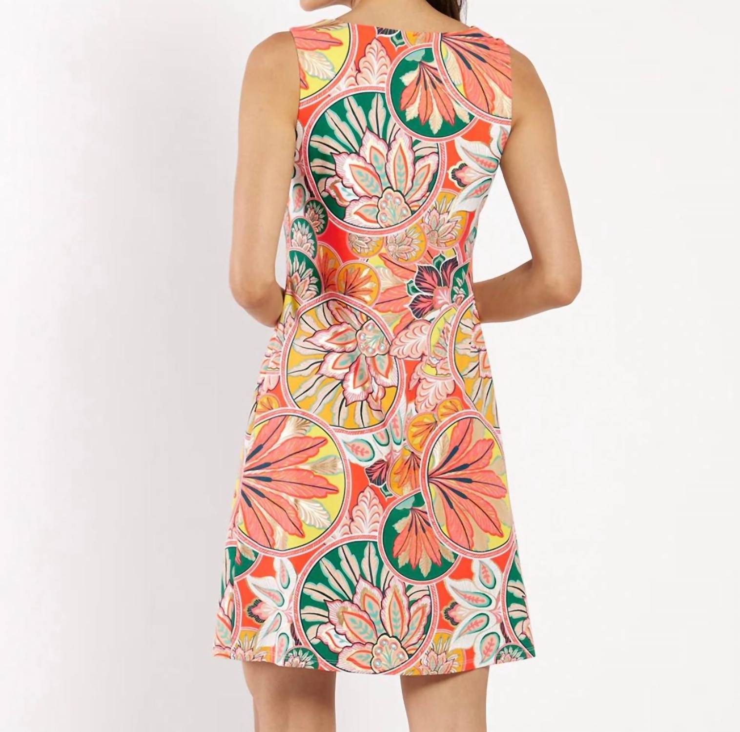 Introducing the Beth Dress 101110 by JUDE CONNALLY, a stunning sleeveless sheath dress in stained glass coral that showcases a floral pattern for a vibrant yet sophisticated look. Crafted from Jude Cloth fabric, this dress is made from cotton and offers a relaxed fit that's perfect for summer vacations or streetwear. With its scoopneck design and pull-on closure, it is both stylish and versatile, ideal for the woman on the go. Proudly made in the U.S.A., this dress ensures easy care with machine wash instructions.