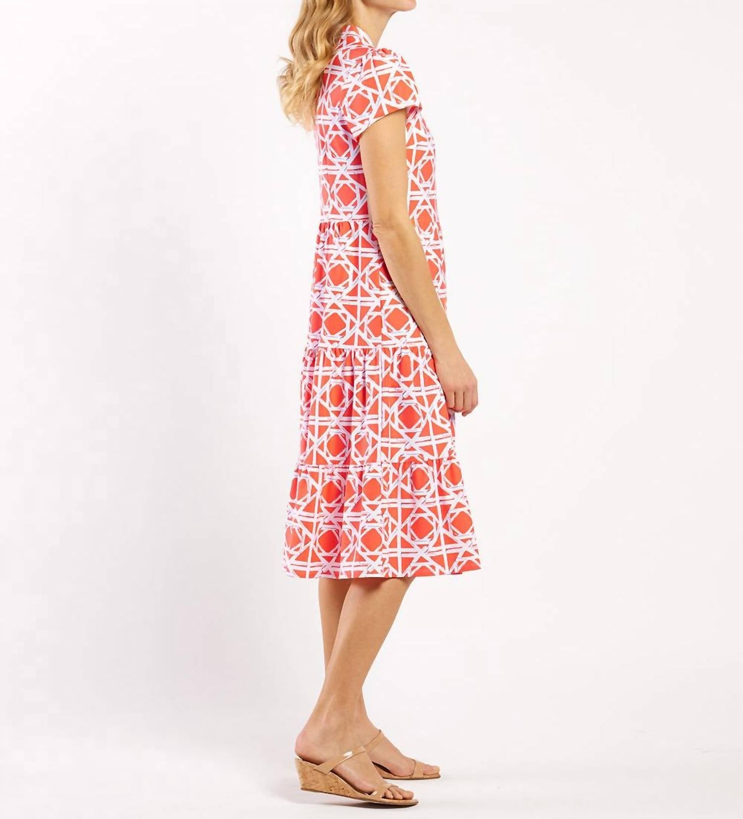 A midi dress so versatile, your options for wearing it are endless. Elevate your wardrobe with the Women's Kristen Maxi Dress by JUDE CONNALLY, perfect for any occasion. This coral tunic dress features a sleeveless design with a mandarin collar and offers a relaxed fit through the waist and hips for ultimate comfort. Crafted from durable nylon/spandex blend, this piece is made in the U.S.A. and boasts a convenient pull-on closure. Care instructions are designed for ease: simply machine wash and opt for a cool iron if necessary. Model is 5'9" and wearing a size small.