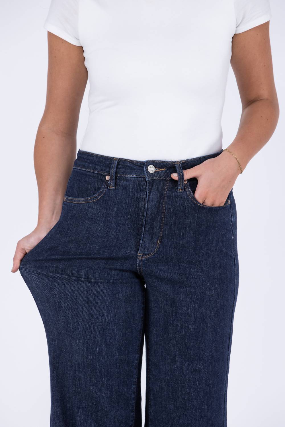 Just as cute as they are comfortable. These jeans feature a composed blend of 91% Cotton, 7% Polyester, and 2% Spandex material tailored for a relaxed fit through the hips and thighs, with a flattering cropped 24-inch inseam. The high-rise design, measuring 10.5 inches, offers superior tummy control for a smooth silhouette. Enhanced by button-back pockets with faux tabs and a zip closure, these non-distressed jeans provide a polished look suitable for any occasion.