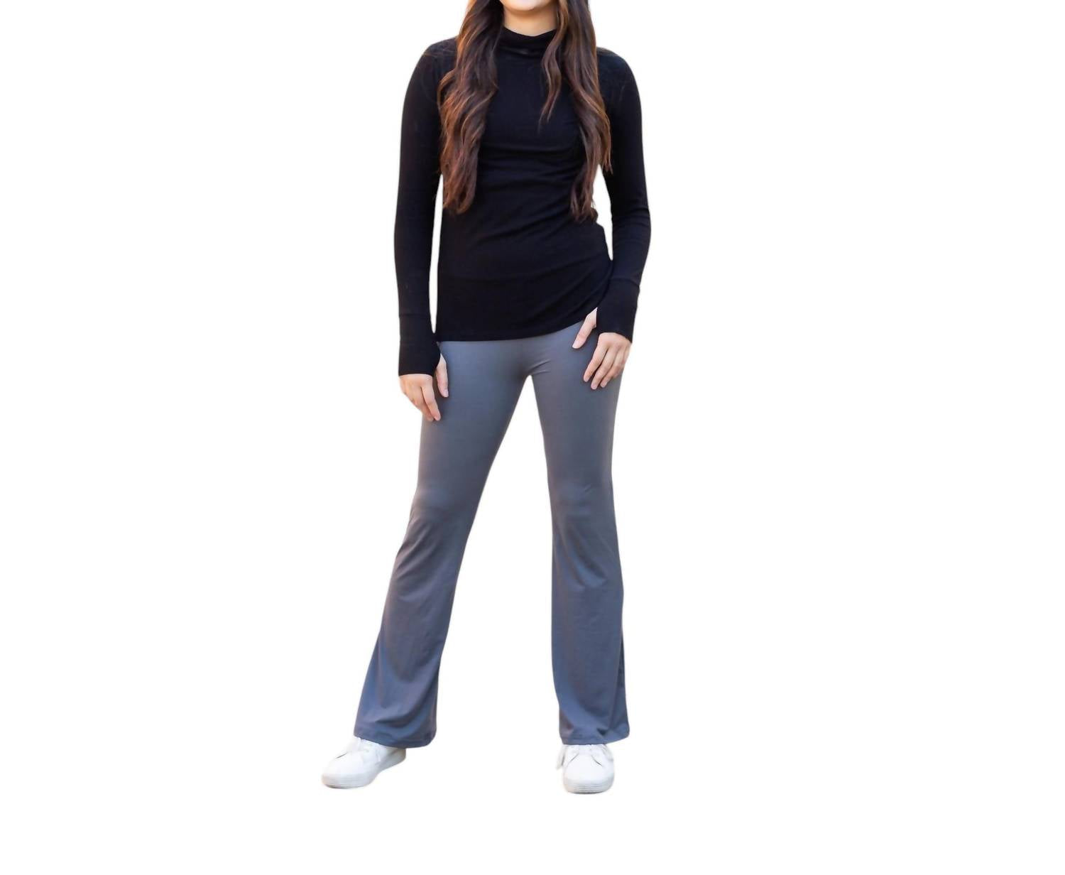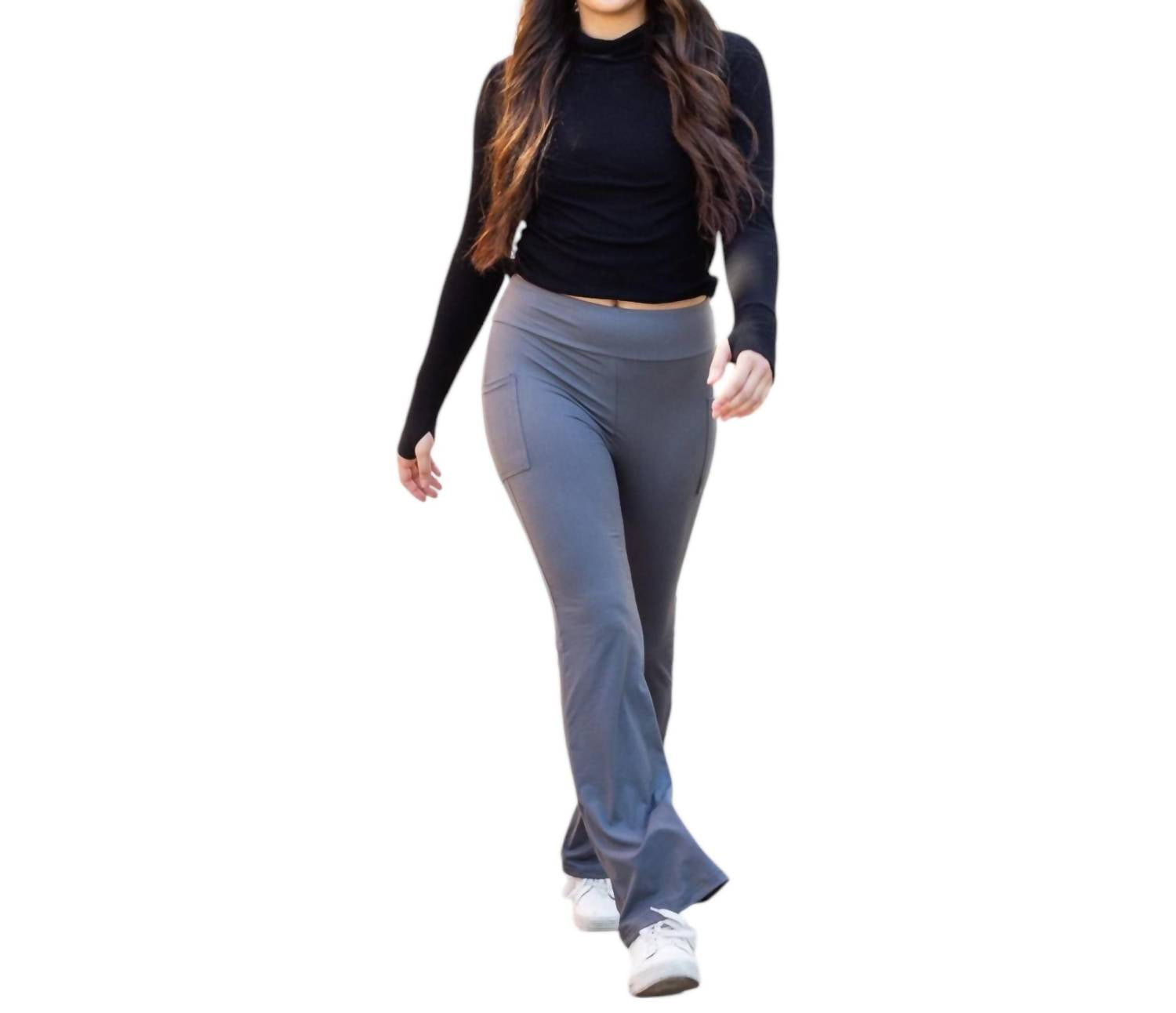 The legging you didn't know you needed and you won't want to take off. These high-rise leggings feature a flattering bootcut leg style and practical pockets, designed for a comfort fit that transitions seamlessly from day to night. Composition: 92% Polyester, 8% Spandex. Closure: Pull-on. Enjoy the versatile sizing with an inseam measuring approximately 30 inches for S/M sizes.