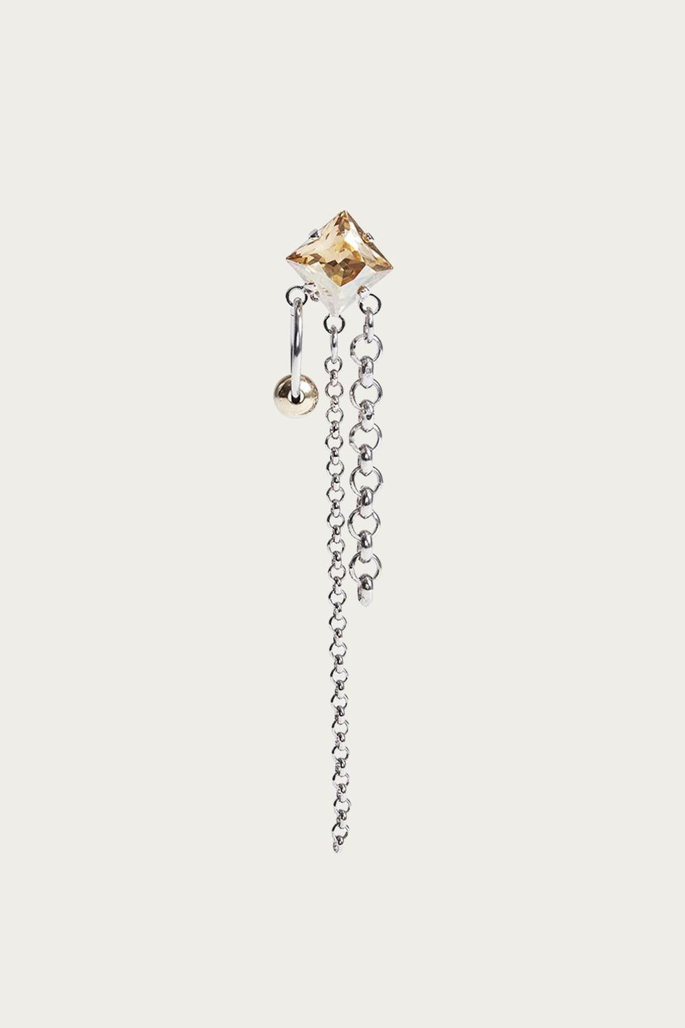 Easy and elegant earrings to complement any outfit.Designed and handmade in France from palladium-plated brass, two varying chains and a small hoop suspend from a golden shadow Swarovski crystal. Sold as a single earring. Length: 3" (8cm). Details: Palladium-plated brass, golden shadow Swarovski crystal, nickel-free. Care: Avoid contact with liquids, wipe dry with a soft cloth