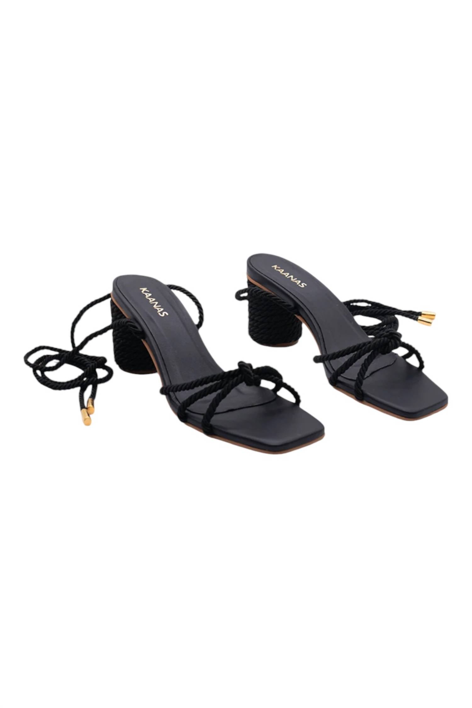 Flowy dresses, cropped pants, and even jumpsuits... this sandal works with them all!Black roped. Wraparound ankle. Upper: Cotton. Innersole: Leather. Heel height: 5.5 cm.