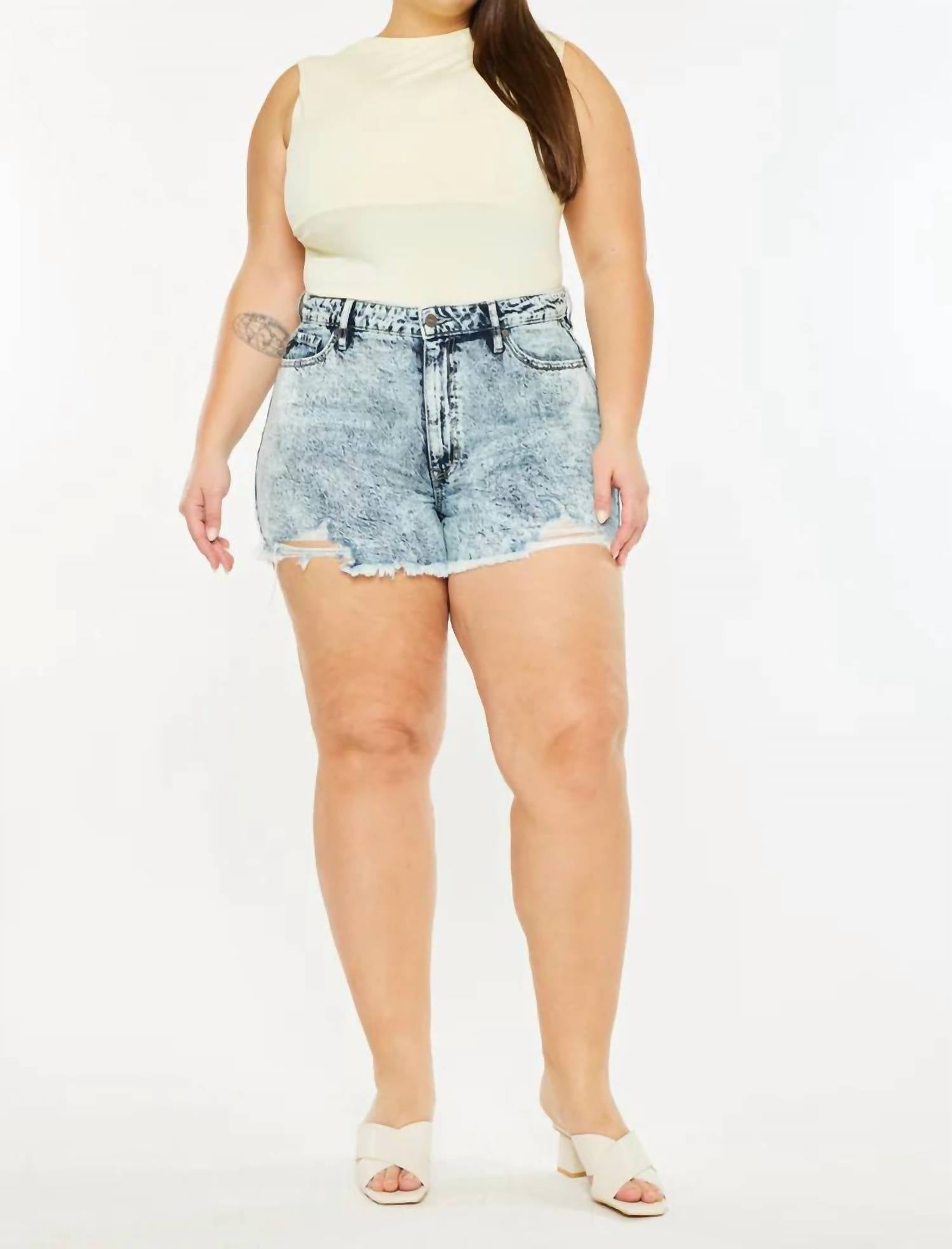 Not only cute but extremely comfortable. The jean shorts you will be reaching for all season long. Crafted by KanCan, these Distressed Denim Shorts in a light wash are a summer staple for a relaxed yet stylish look. Designed with a raw hem, minimal fading, and whiskering, they boast an edgy flair that's great for concerts and casual outings. Made from 100% cotton, these shorts feature a 13" rise and a 3.5" inseam with convenient pockets and a zip closure. Care: Machine wash to maintain their vintage charm.