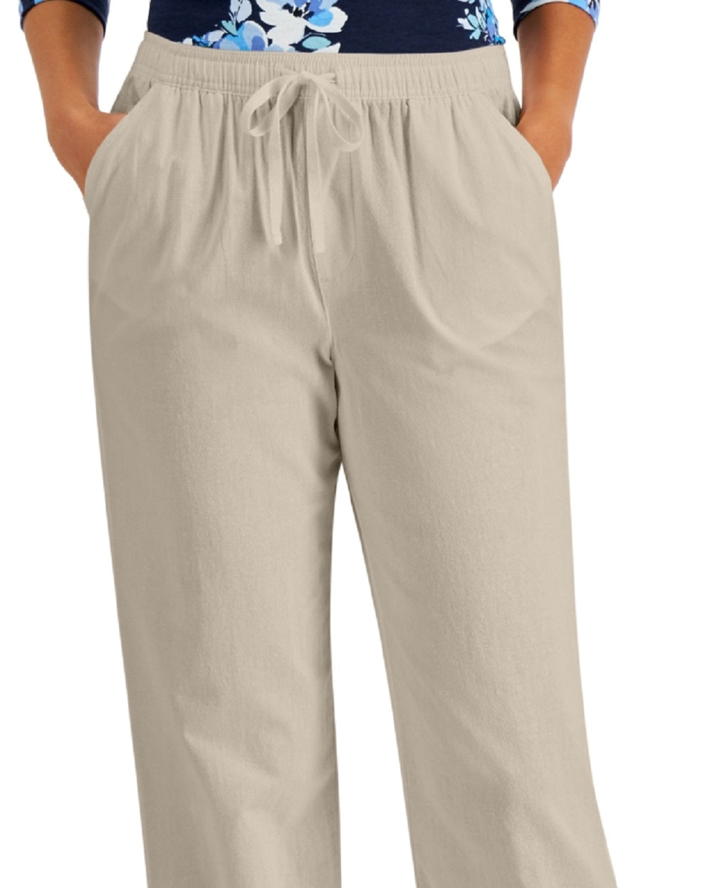 Easy pull-on styling and an adjustable drawstring waist give effortless appeal to Karen Scott's Daphne pants| a contemporary cropped style finished with handy pockets at the hips