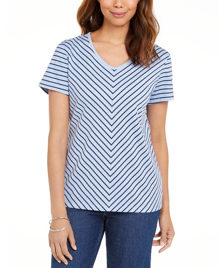 Karen Scott Mitered-Stripe Top Grey Size Small