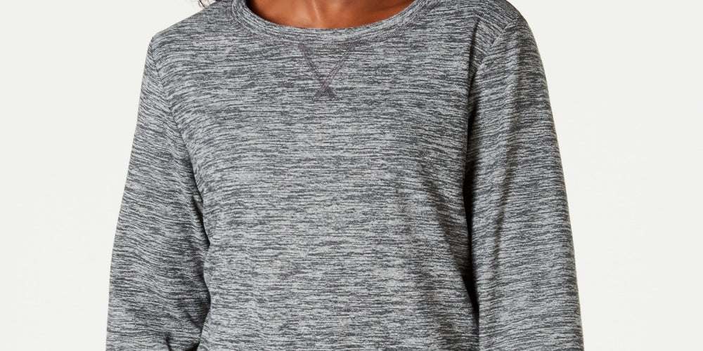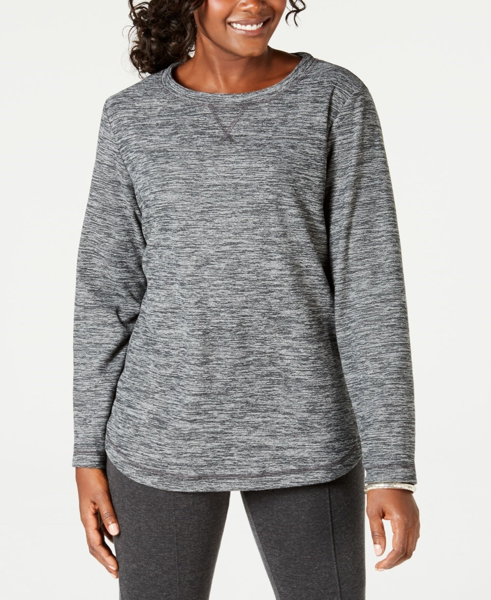 Karen Scott Women's Long Sleeve Spacedye Microfleece Top Charcoal Size X-Small