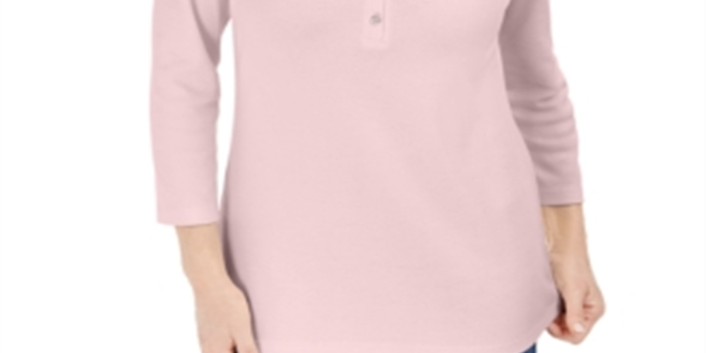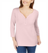 Karen Scott Women's 3/4 Sleeve Henley Shirt Pink Size Small