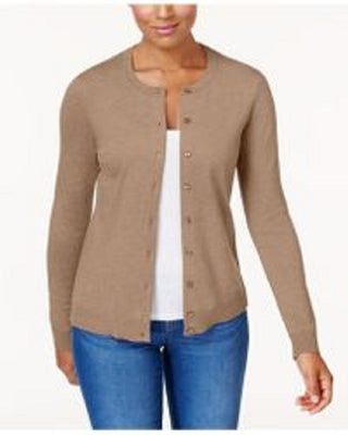 Karen Scott Women's Bead-Button Cardigan Brown Size X-Small