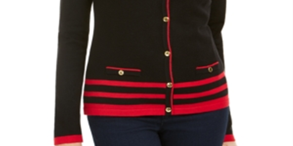 Ask a question about Karen Scott Womens Black Striped Long Sleeve Button up Sweater Black Size Medium