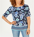 Karen Scott Women's Boat Neck Floral Print Border Top Blue Size X-Small