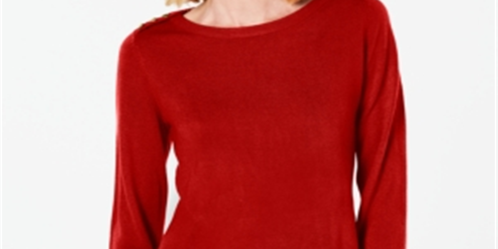 Ask a question about Karen Scott Women's Button Shoulder Sweater Red Size Petite XL