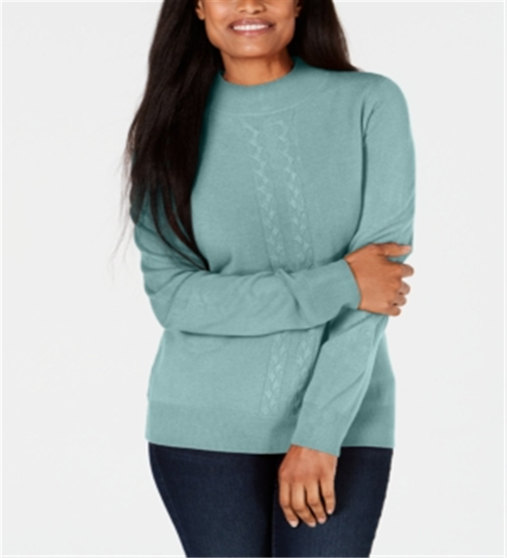 Karen Scott Women's Cable Front Mock Neck Sweater Blue Size Large