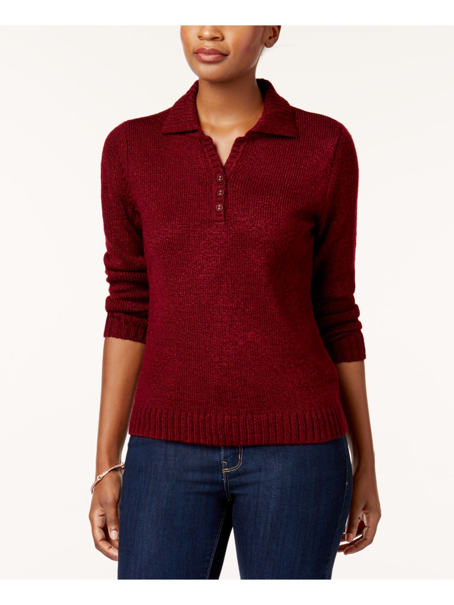 Karen Scott Women's Collared Sweater Red Size Medium