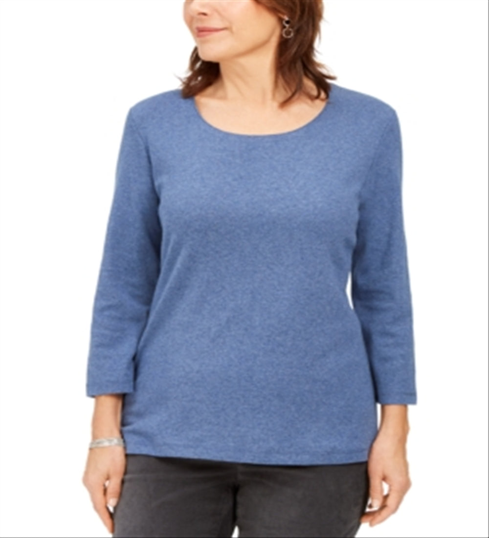 Karen Scott Women's Cotton 3/4 Sleeve Top Blue Size X-Small