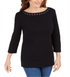 Karen Scott Women's Cotton Boat Neck Grommet Trim Top Black Size Petite Medium