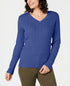 Heathered cotton and plenty of cable-knit details elevate this petite V-neck sweater from Karen Scott