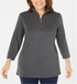 Karen Scott Women's Cotton Half Zip Mock Neck Top Gray Size Medium